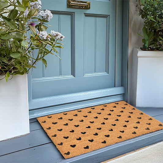 Fußmatte Braun Schwarz "Herzen", Kokosnuss und Gummi 75x45x1 cm