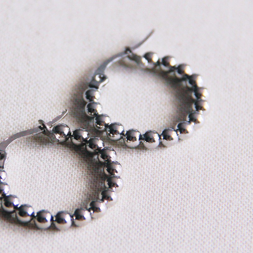 EA505.2: Creolen aus Edelstahl 20 mm „Kugeln“ – Silber